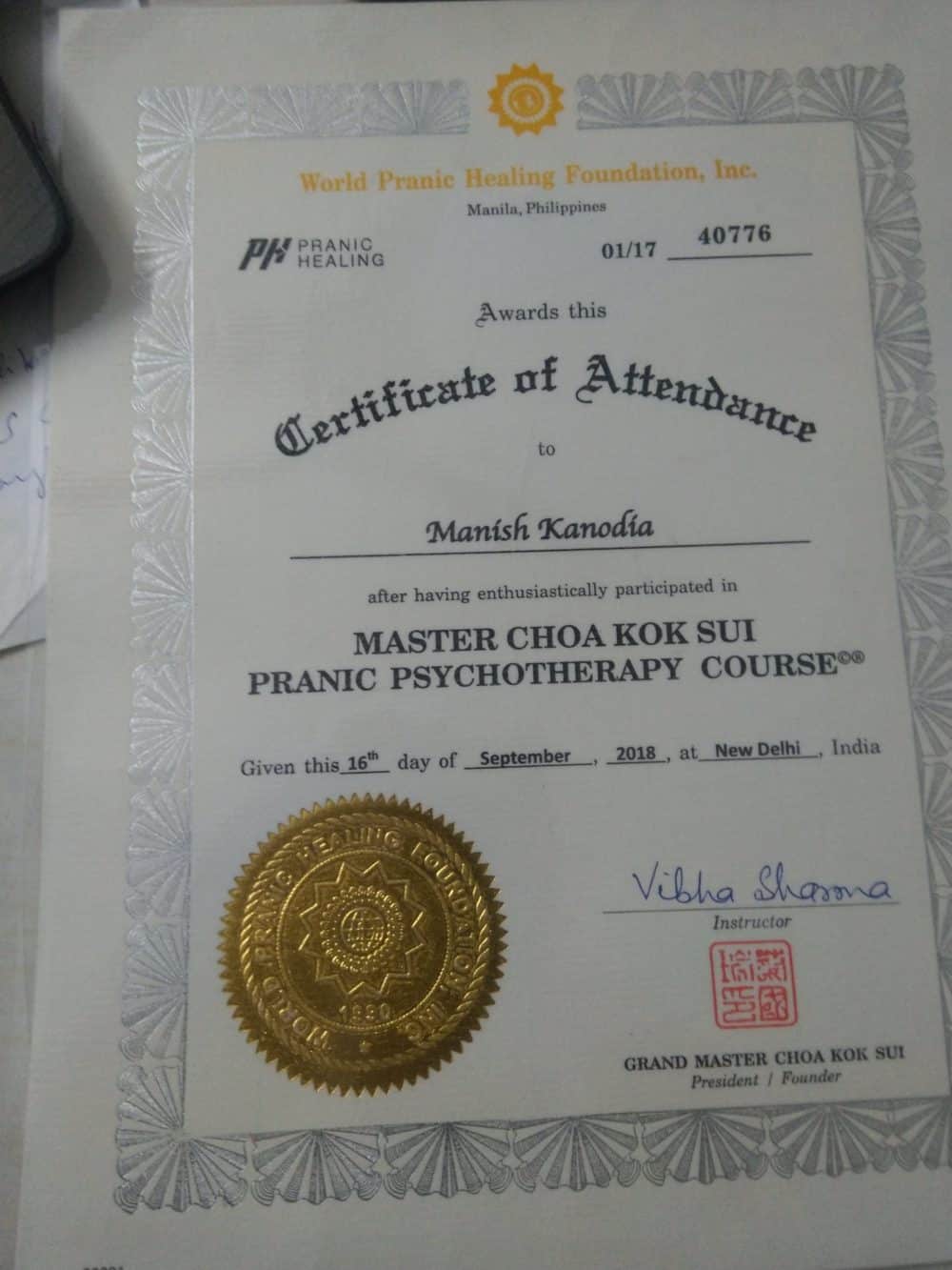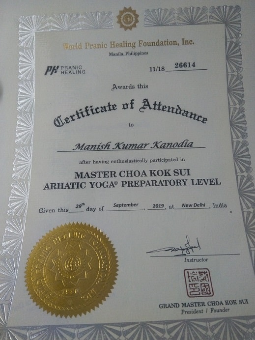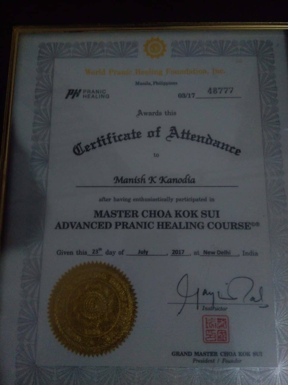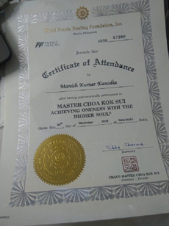Manish is in the process of becoming a trainer for the Pranic healing Level 1 course. He guides and mentors many healers through his guidance with scanning and teaches them how to scan and heal properly. He is trying to be a true disciple of his Guru Master Choa Kok Sui(MCKS) and working on the direction of His teachings.