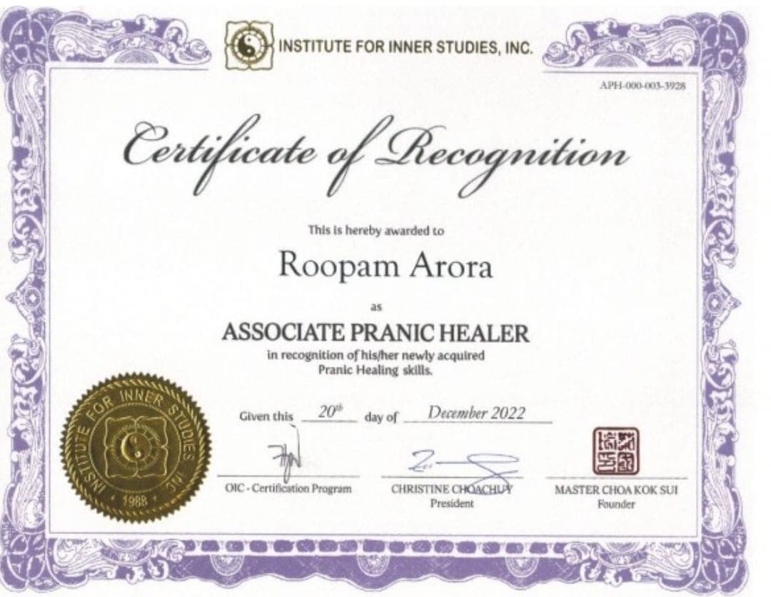 Meet Roopam Arora, a skilled pranic healer in Thousand Oaks, California. She embarked on her healing journey in 2018, and since then, she has successfully transformed the lives of over 50 individuals.