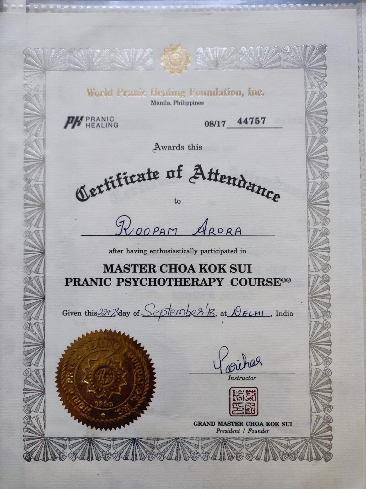 Motivated by her personal journey, she decided to undertake Pranic Healing classes in same year and dedicated herself to continuous practice. With an unwavering mission to help as many people as possible, Roopam found her purpose in the world of Pranic Healing.